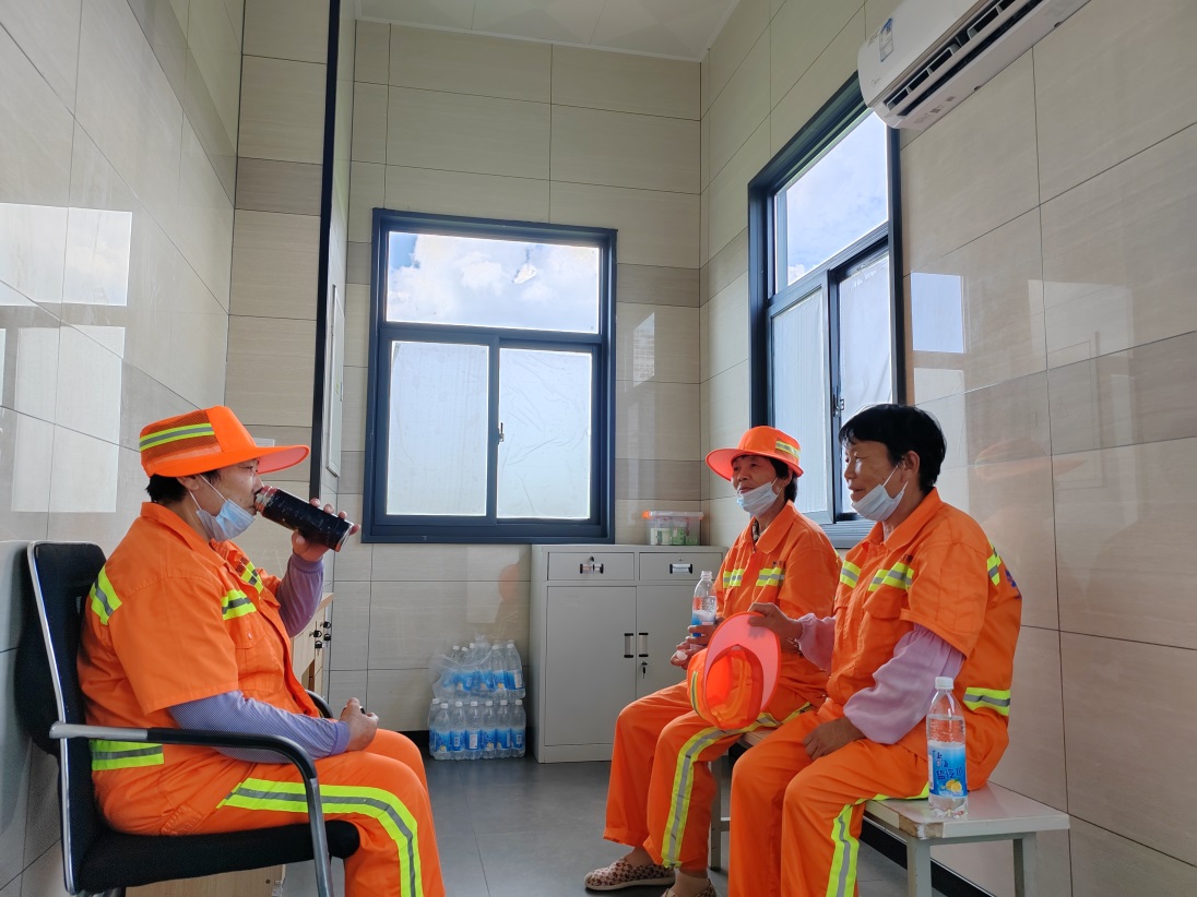 “清涼驛站”全開(kāi)放,避暑納涼有去處。配有空調、防暑降溫藥品、飲用水的31座公共廁所的休息室、管理間全部對外開(kāi)放,工人作業(yè)間歇,可以隨時(shí)到“驛站”避暑納涼,讓一線(xiàn)工人在酷暑中享受一絲清涼。