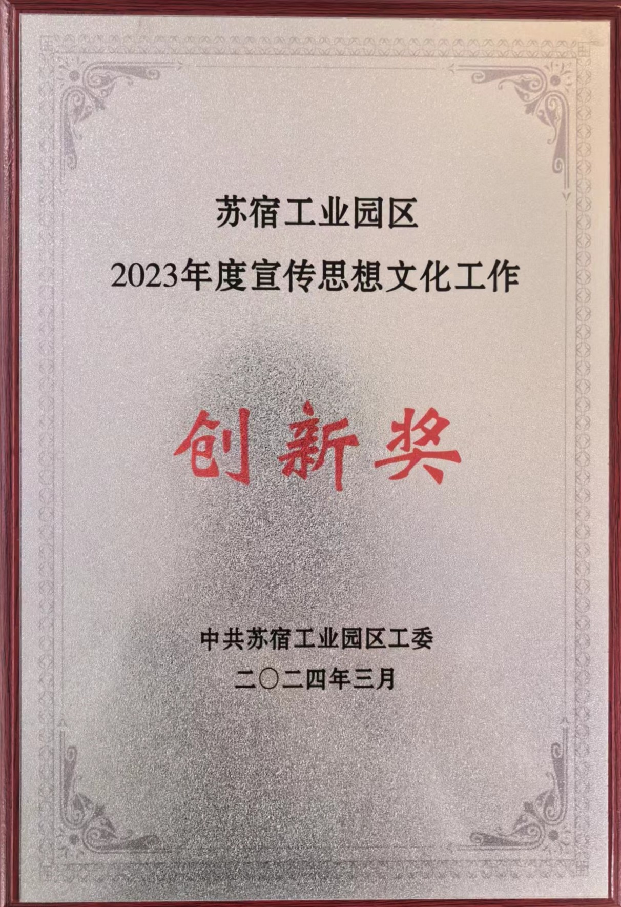 蘇宿工業(yè)園區2023年度宣傳思想文化工作創(chuàng )新獎